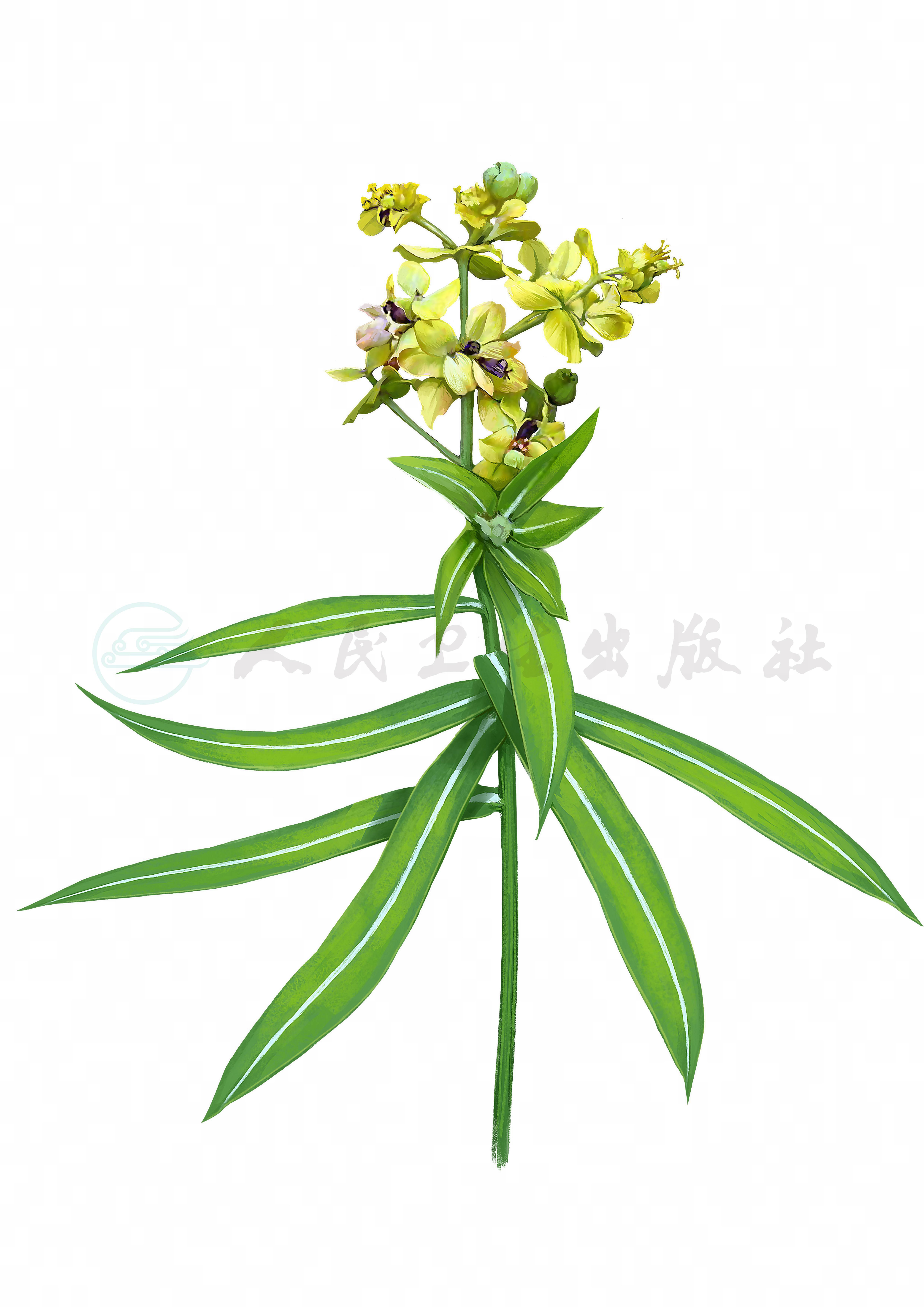 京大戟苦寒有毒,入肺、脾、肾经。泻水逐饮,药力峻猛,与甘遂功似,尤“能泄脏腑之水湿”(《本草纲目》),主治水肿胀满、胸腹积水、痰饮积聚。内服外用可消肿散结,治痈疮肿毒及瘰疬痰核等。