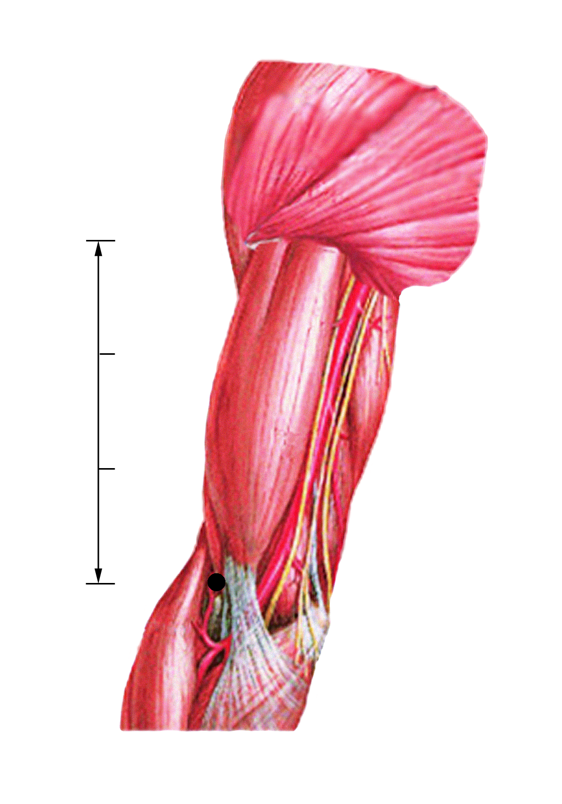 在肘区,肘横纹上,肱二头肌腱桡侧缘凹陷中。