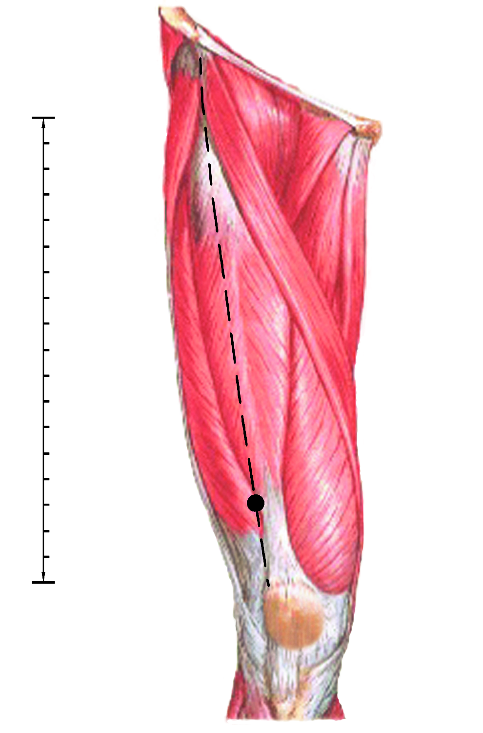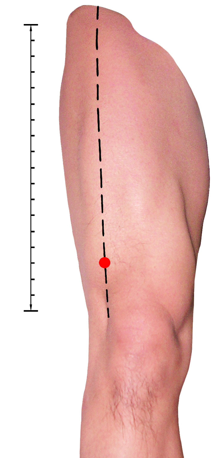 在股前区,髌底上3寸,股直肌肌腱外侧缘。